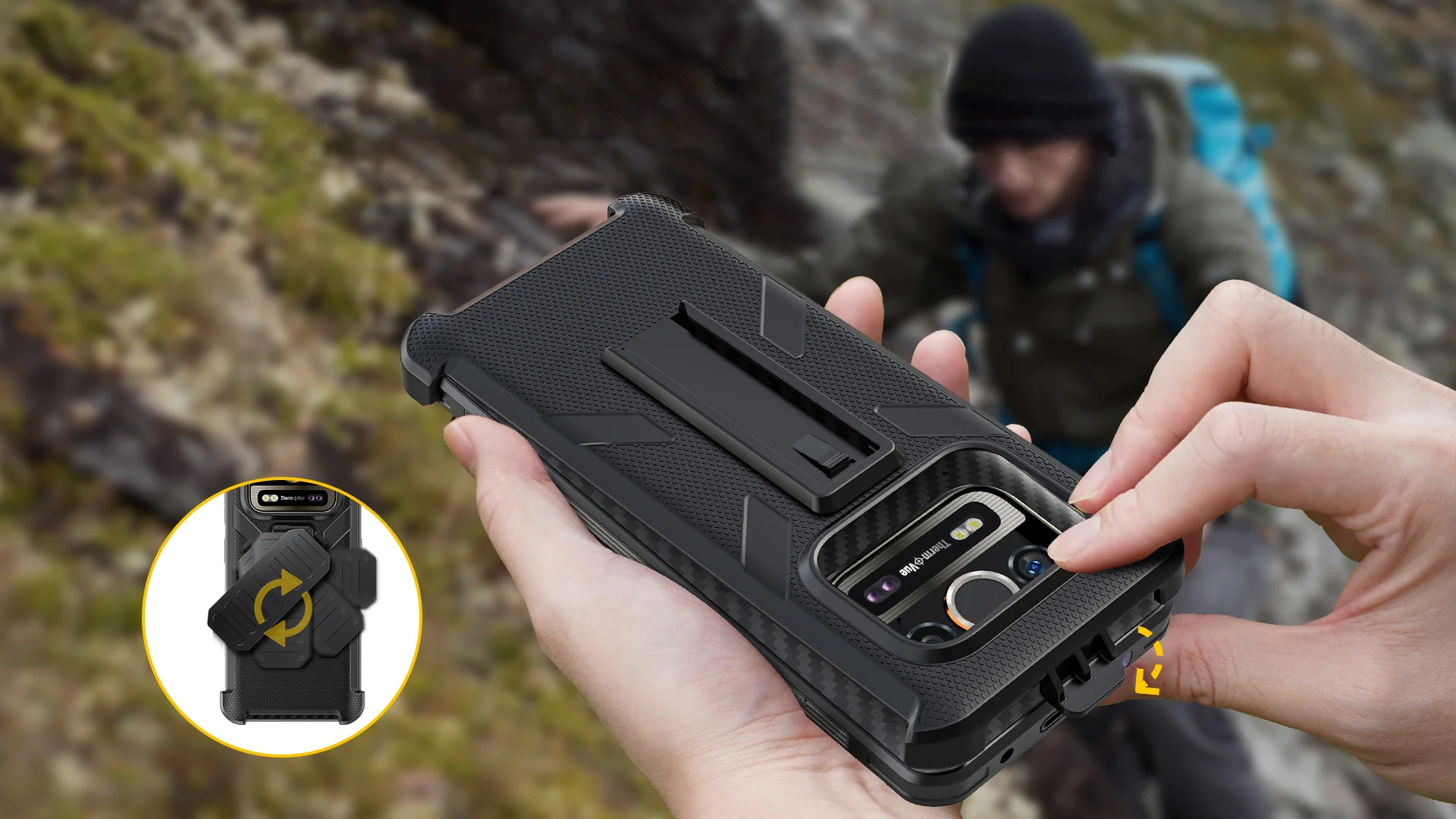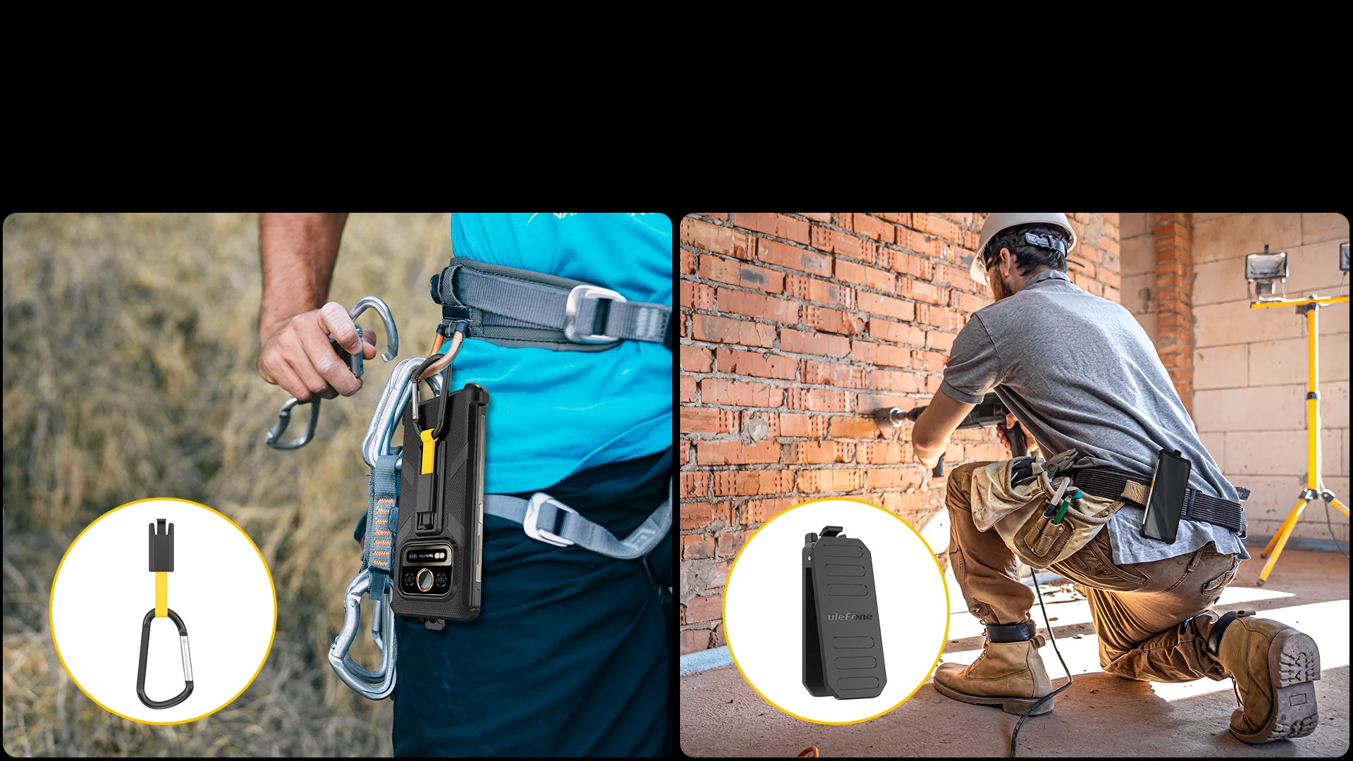 Создан для максимальной практичности и удобства, обладает зажимом для ремня, который можно развернуть на 180°°. Смартфон можно надёжно закрепить на поясе с помощью карабина для быстрого доступа к устройству.