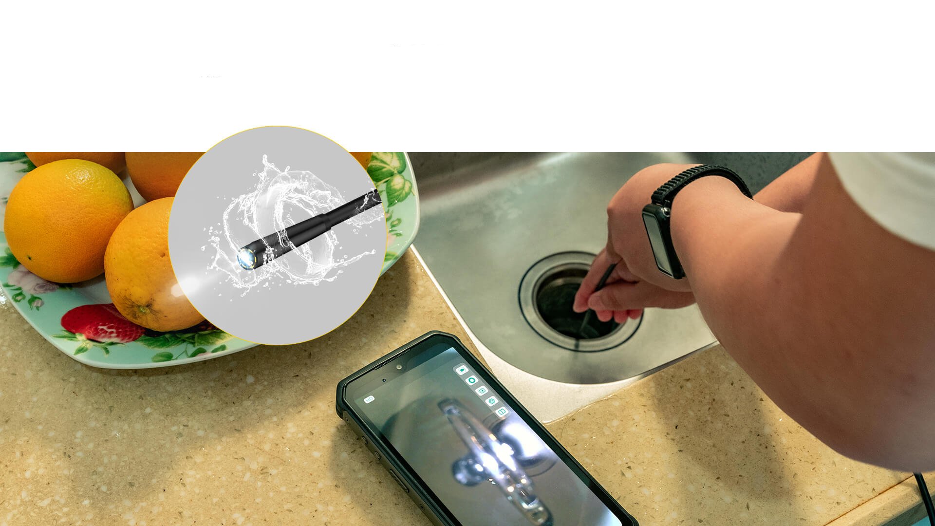 Кабель и камера обладают водонепроницаемостью, соответствуя стандарту IP67. Можно использовать для осмотра сантехнических труб и др. Однако не стоит подвергать длительному воздействию воды.
