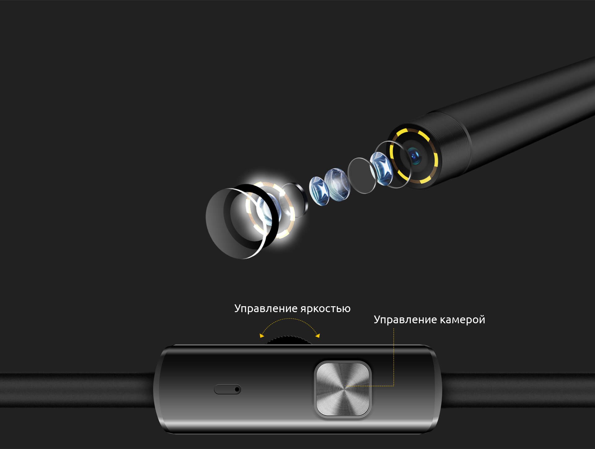 Упругий кабель длиной 2 метра может сгибаться и сохранять свою форму после изгиба, что упрощает управление камерой для осмотра труднодоступных мест таких как системы кондиционирования, трубопровод, двигатель автомобиля и др.