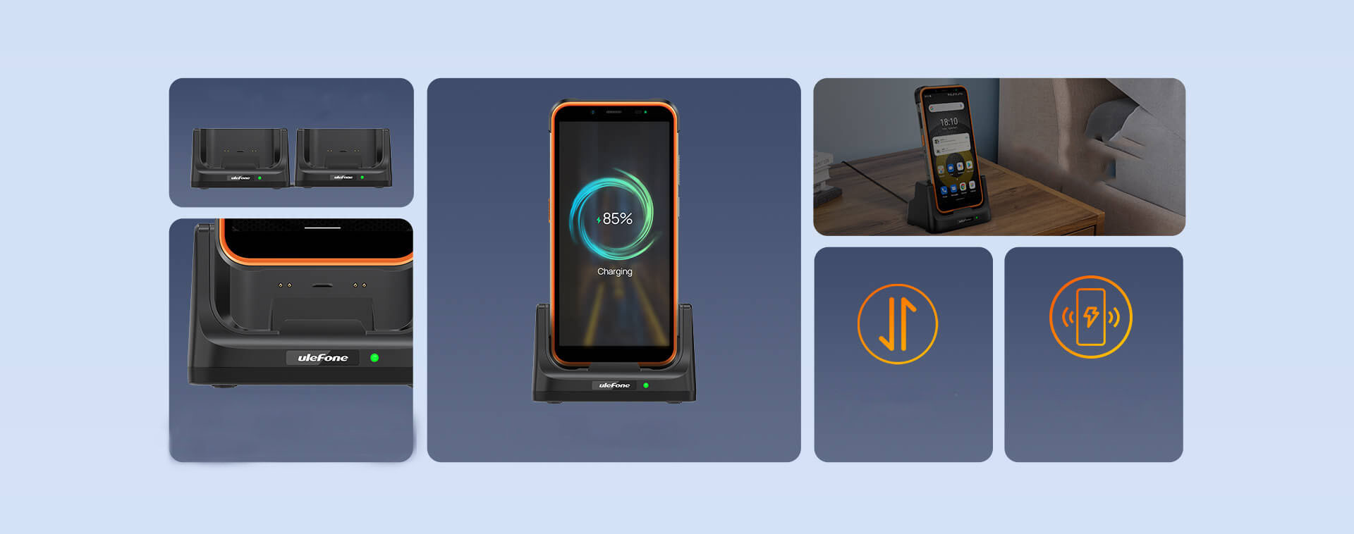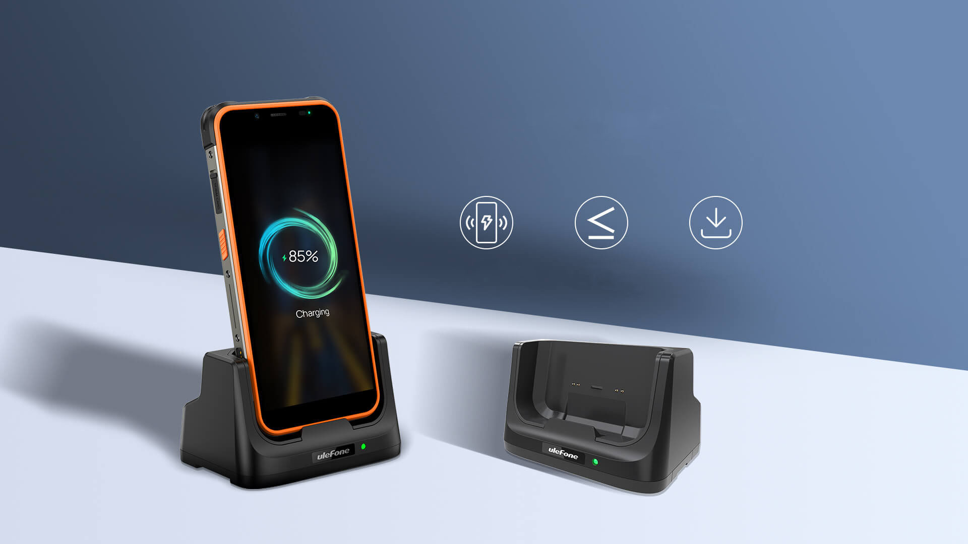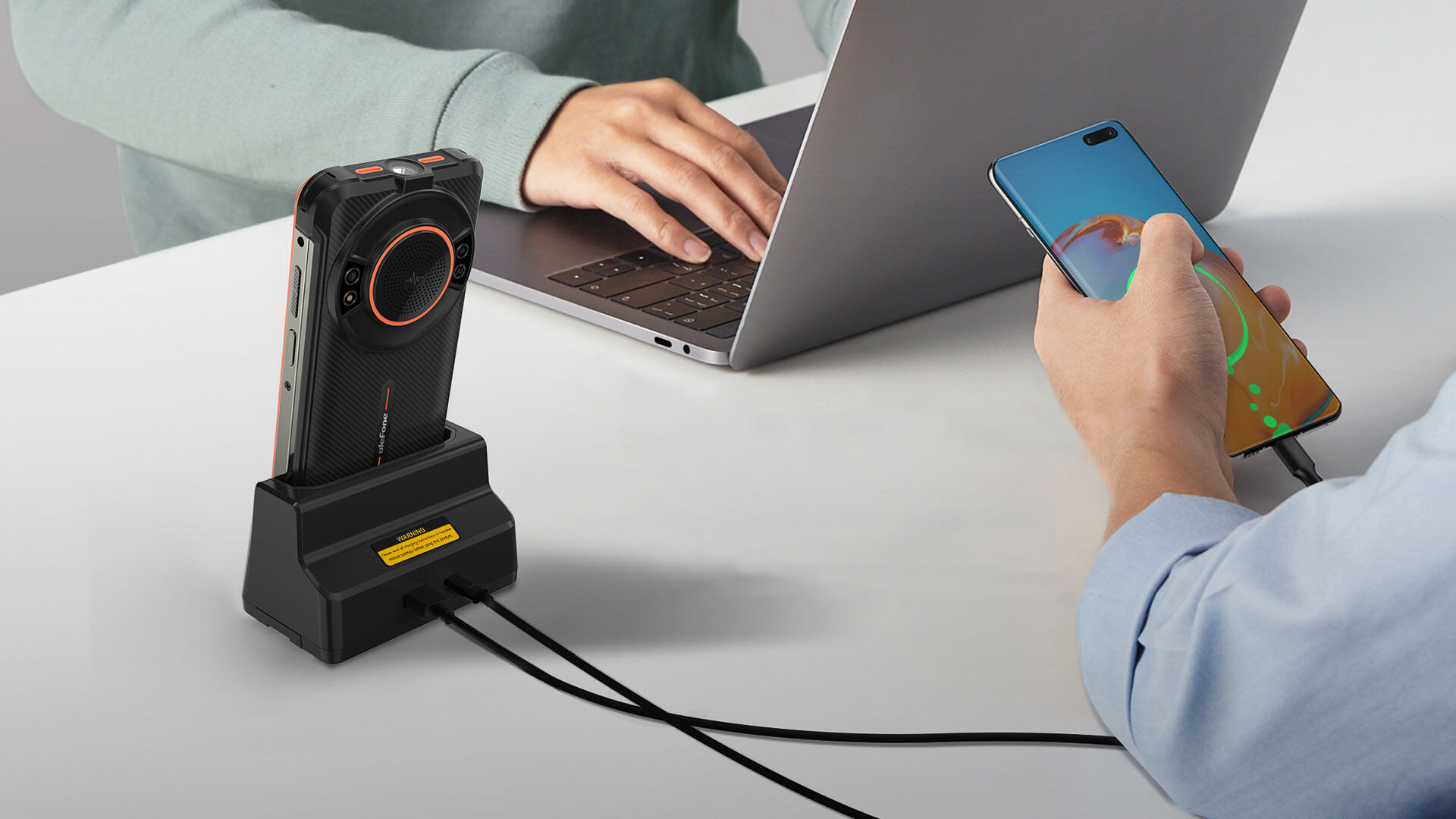 Зарядная станция разработана специально для Ulefone Power Armor 16/16 Pro/21, прорезиненное основание позволяет надёжно разместить её на столе.
