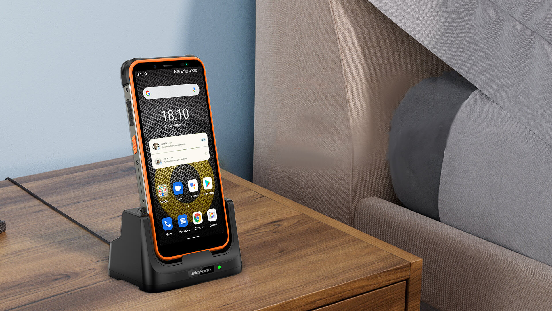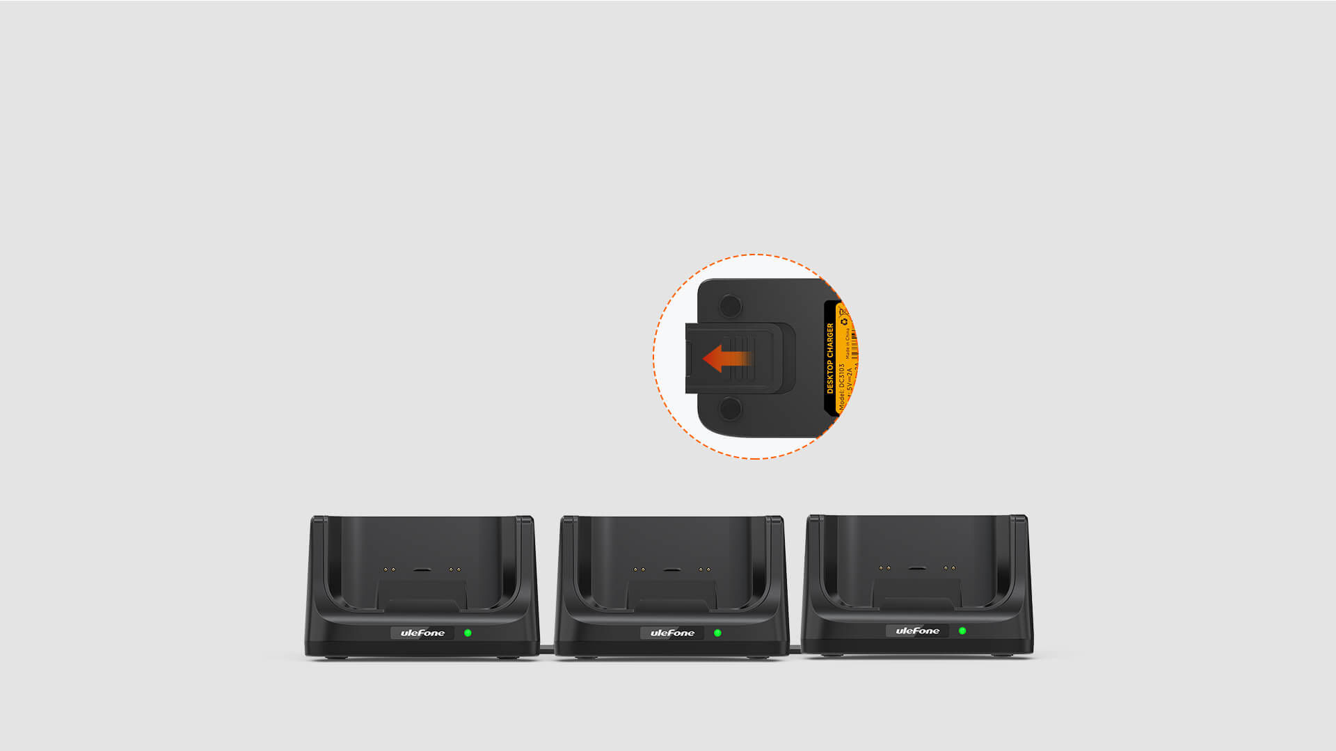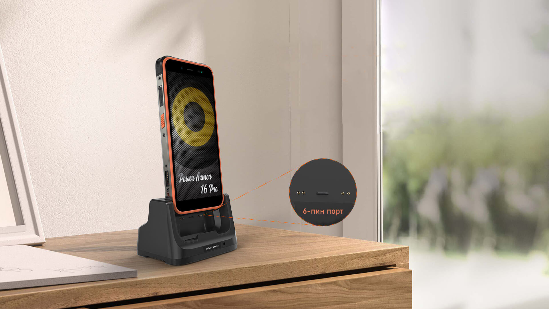 Зарядная станция разработана специально для Ulefone Power Armor 16/16 Pro/21, прорезиненное основание позволяет надёжно разместить её на столе.